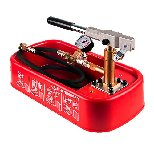 Для гидравлического испытания до 30 бар, пластиковый резервуар, емкость: 4,5л, шланг 1,8м. Вес 4,5кг.