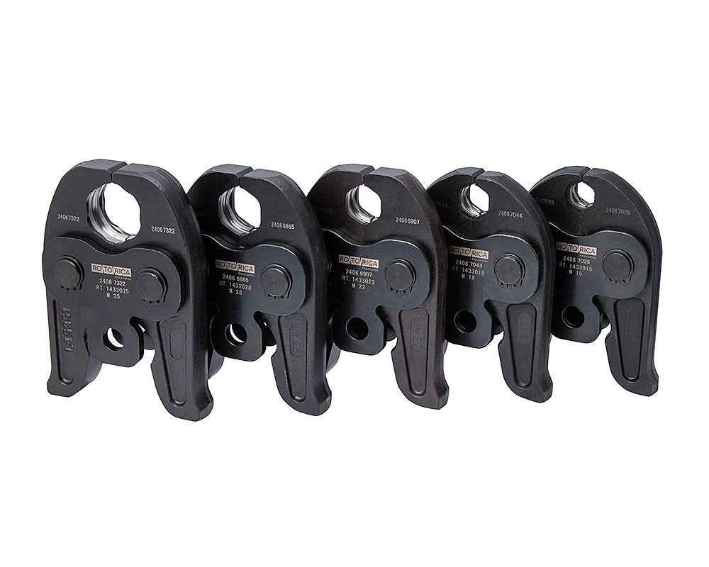Пресс-клещи для монтажа пресс-фитингов тонкостенных металлических трубопроводов. Профиль прессования М. Типоразмеры от 15 до 35 мм. Совместимы с прессом Rotorica Rotorica ProPresser M54E 32кН.