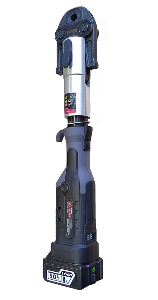 Аккумуляторный пресс для радиальных пресс-фитингов. OLED — дисплей. Диапазон Ø 12 – 54 мм (16 — 63 мм). Усилие обжима 32 кН. LED подсветка. Вращение патрона 180 °. Аккумулятор Li-Ion, 18 В, 5.0 А•ч.