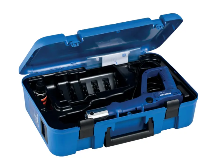 Сетевой гидравлический стандартный пресс для обжима фитингов Geberit Mapress диаметром от 12мм до 54мм. Номинальное усилие: 32 кН. В комплекте без клещей, в кейсе. Поворотная головка. Группа совместимости Geberit [2].