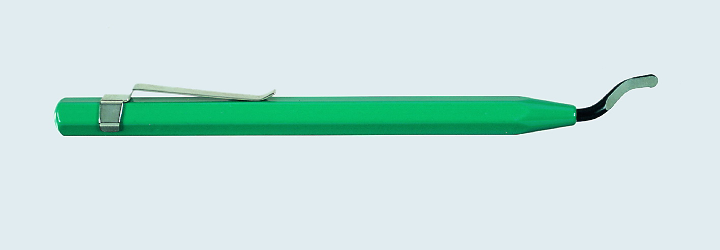 Инструмент с прочным лезвием для снятия заусенцев со срезов медных труб.