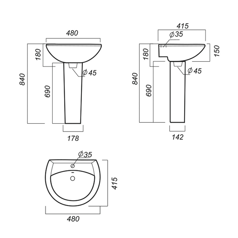 Предназначена для установки в ванных и туалетных комнатах. Монтаж на пьедестал Sanita Аттика.