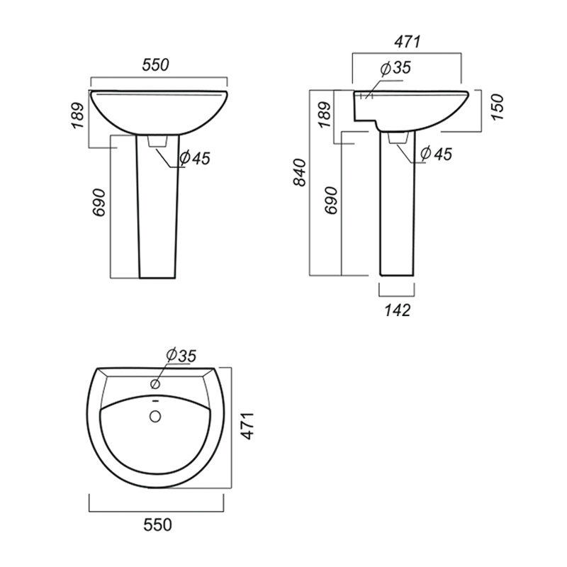 Предназначена для установки в ванных и туалетных комнатах. Монтаж на пьедестал Sanita Аттика.