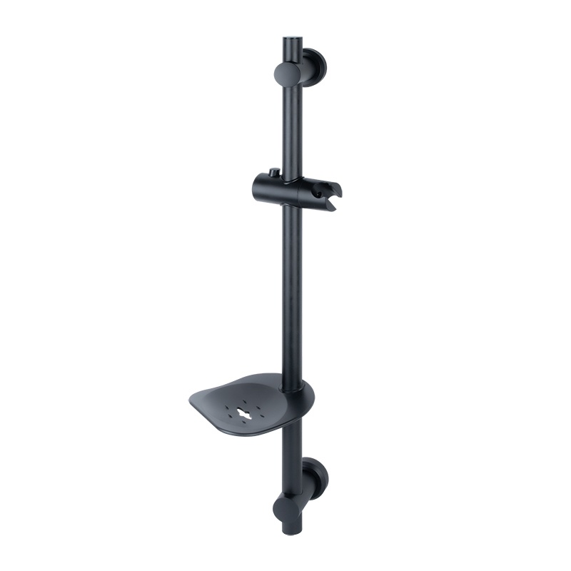 Предназначена для комплектации смесителя. Выполнена из нержавеющей стали и ударопрочного пластика. Матовая. В комплект входят: стойка, комплект держателей стойки, держатель для лейки с кнопочным фиксатором, мыльница, комплект крепежа.