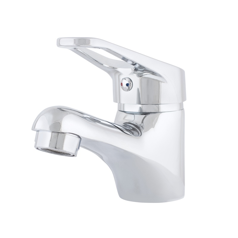 Предназначен для установки на раковину. Корпус выполнен из цинкового сплава, стойкого к коррозии, давлению и перепаду температур. Пластмассовая ручка с отверстием. Керамический картридж. Гайка картриджа из нержавеющей стали. Крепеж со стальной с прокладкой.