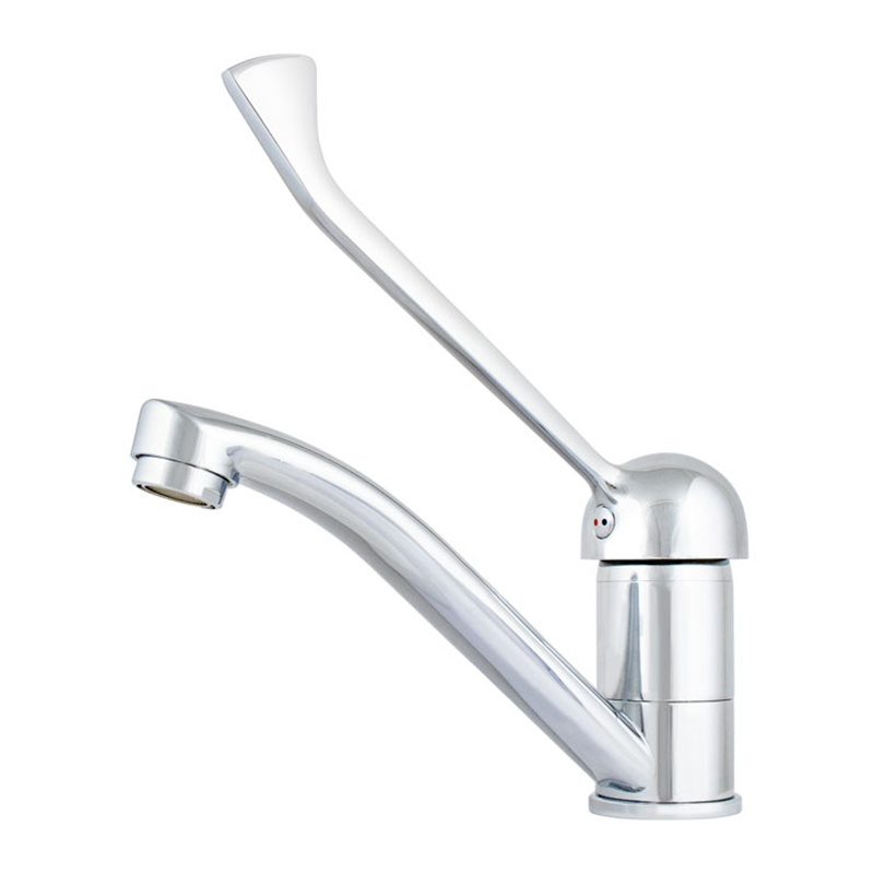 Предназначен для установки на раковину. Рекомендован для использования в учреждениях, где требуется установка смесителей с некистевым управлением. Корпус из высококачественной латуни. Керамический картридж. Расход воды при давлении 3 бар — 19 л/мин. Поворотный латунный излив. Аэратор с металлическими сетками.