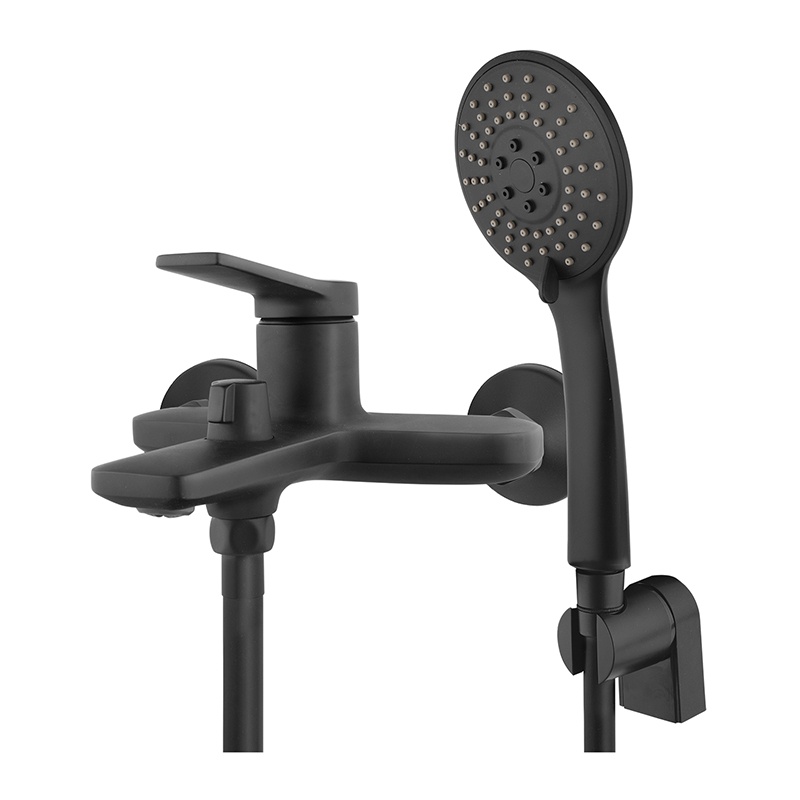 Комплектация: смеситель, шланг для душа ПВХ 1,5 м черный, душевая лейка d=101 мм, 3 режима, черная, пластиковый держатель для лейки