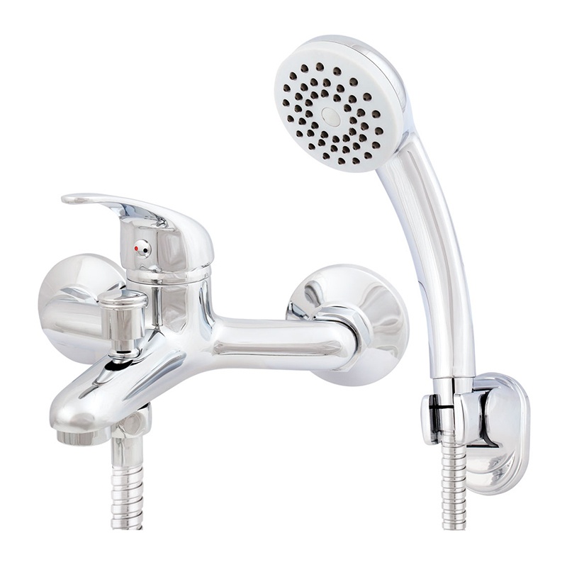 Комплектация: смеситель, металлизированный шланг для душа 1.5 м, душевая лейка (диаметр 70 мм) 1 режим, пластиковый держатель для лейки, комплект крепежа, эксцентрики, декоративные накладки, паспорт изделия.
