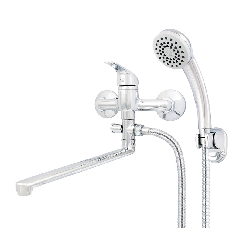 Комплектация: смеситель, металлизированный шланг для душа 1.5 м, душевая лейка (диаметр 70 мм) 1 режим, пластиковый держатель для лейки, комплект крепежа, эксцентрики, декоративные накладки, паспорт изделия.