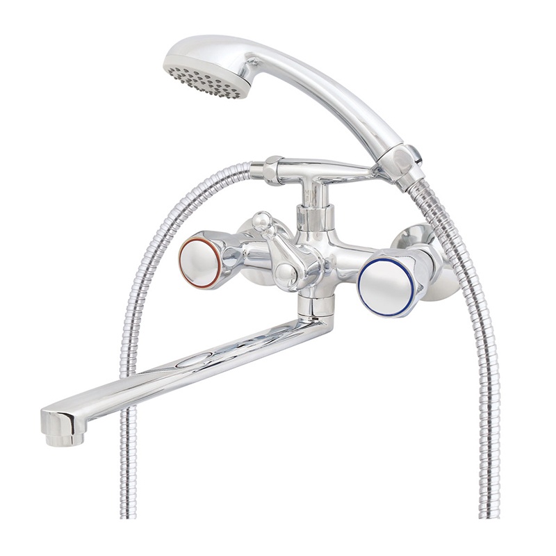 Комплектация: смеситель, металлизированный шланг для душа 1.5 м, душевая лейка (диаметр 70 мм) 1 режим, пластиковый держатель для лейки, комплект крепежа, эксцентрики, декоративные накладки, паспорт изделия.