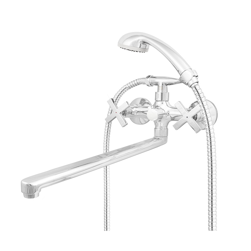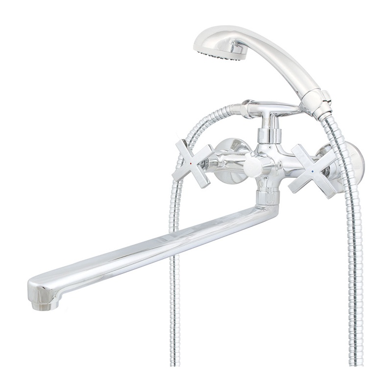 Комплектация: смеситель, металлизированный шланг для душа 1.5 м, душевая лейка (диаметр 70 мм) 1 режим, пластиковый держатель для лейки, комплект крепежа, эксцентрики, декоративные накладки, паспорт изделия.