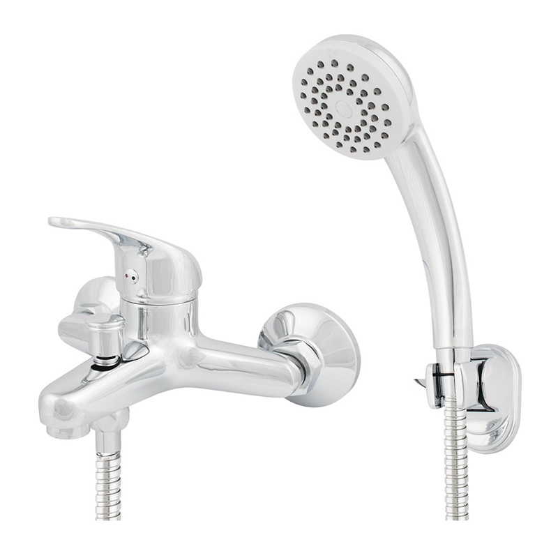 Комплектация: смеситель, металлизированный шланг для душа 1.5 м, душевая лейка (диаметр 70 мм) 1 режим, пластиковый держатель для лейки, комплект крепежа, эксцентрики, декоративные накладки, паспорт изделия.