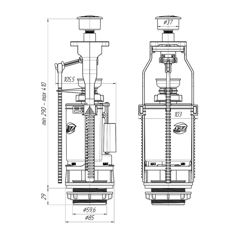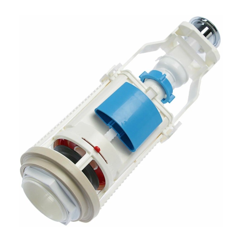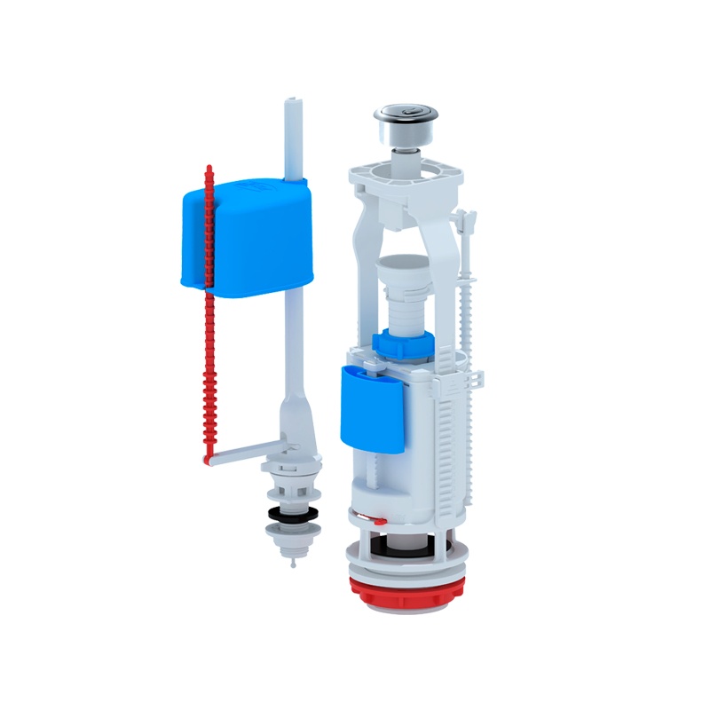 Предназначена для комплектации бачка унитаза. Универсальная, двухрежимная с нижней подводкой. Наливной клапан мембранного типа обеспечивает контроль за поступлением воды в сливной бачок. Штуцер пластиковый G 1/2″ с сетчатым фильтром. Регулировка уровня наполнения. Сливной клапан — представляет собой систему спуска воды в унитаз (после нажатия кнопки), перекрывает его после опустошения бачка, и обеспечивает аварийный слив. Кнопка пластиковая с металлизированным покрытием в цвете глянцевый хром .