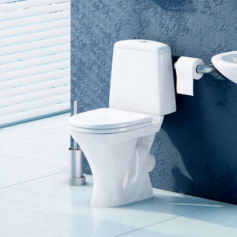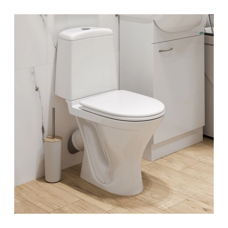Предназначен для бытового использования. Унитаз ободковый, керамический с косым выпуском. Антивсплеск. Смывной бачок керамический с нижним подводом воды. Однорежимный спускной механизм Уклад. Сиденье для унитаза из полипропилена.