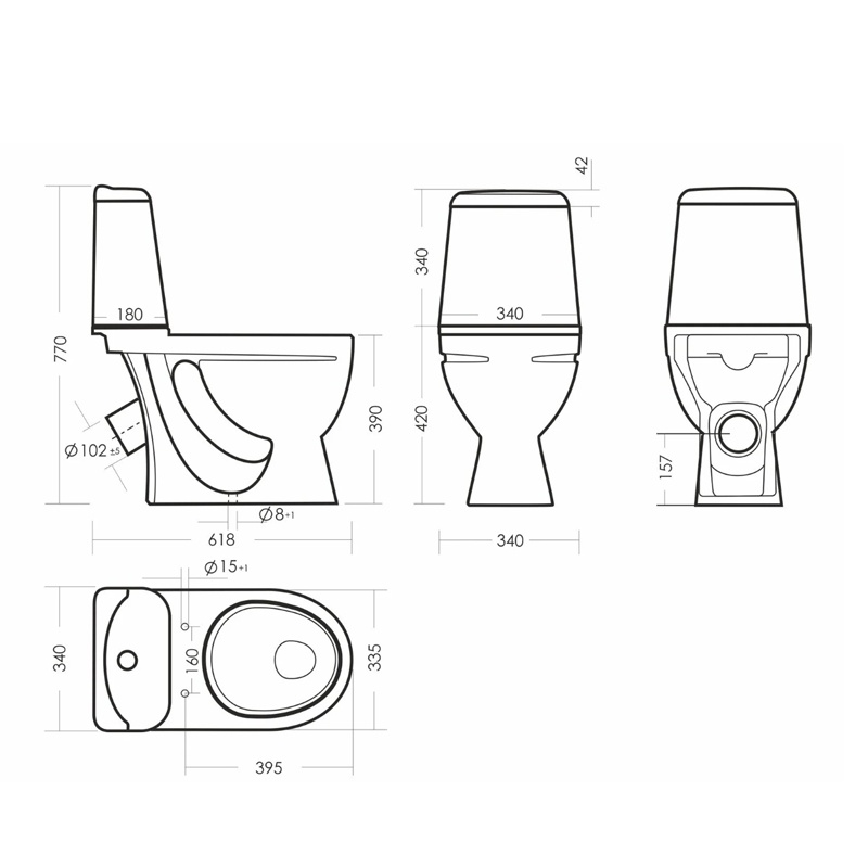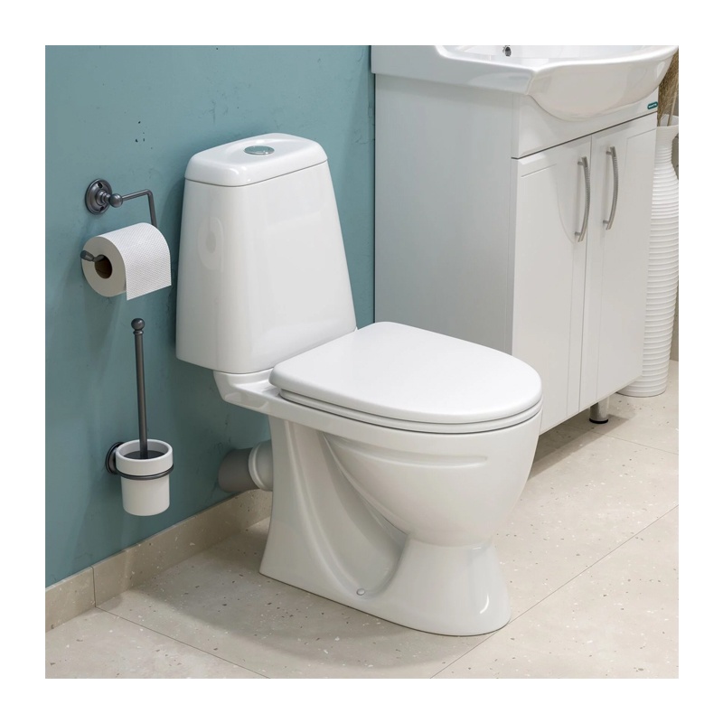 Предназначен для бытового использования. Унитаз ободковый, керамический с косым выпуском. Антивсплеск. Смывной бачок керамический с нижним подводом воды. Двухрежимный спускной механизм Oliveiro. Сиденье для унитаза из дюропласта Wirquin с микролифтом.