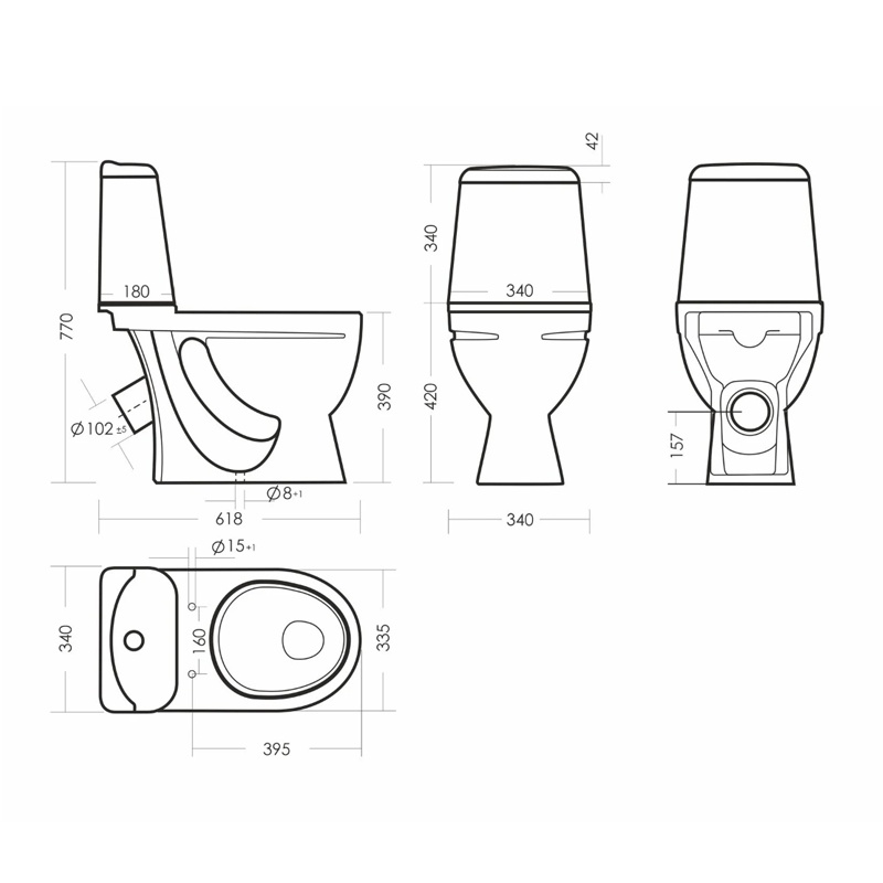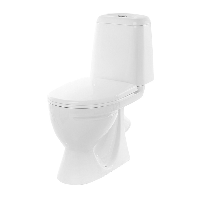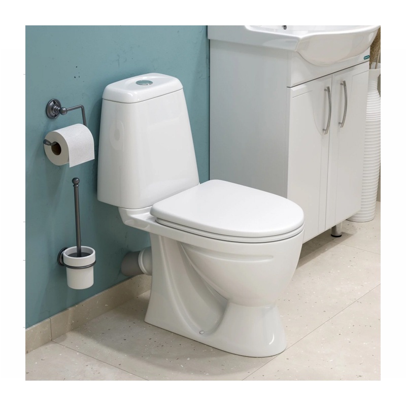 Предназначен для бытового использования. Унитаз ободковый, керамический с косым выпуском. Антивсплеск. Смывной бачок керамический с нижним подводом воды. Однорежимный спускной механизм Уклад. Сиденье для унитаза из полипропилена.