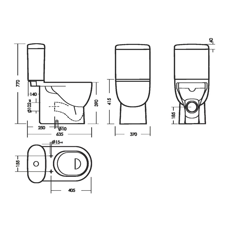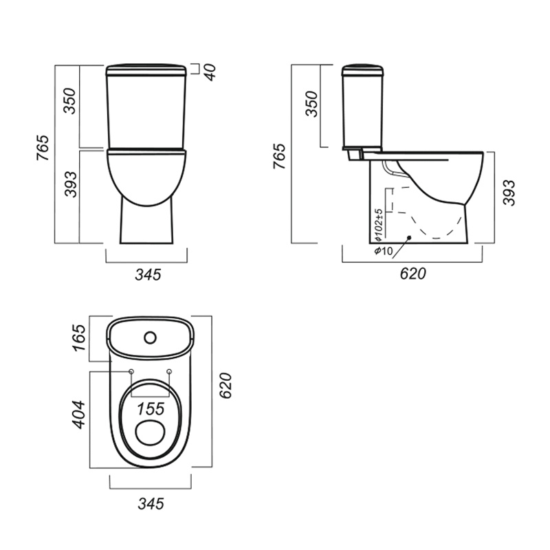 Предназначен для бытового использования. Унитаз ободковый, керамический с горизонтальным выпуском. Антивсплеск. Смывной бачок керамический с нижним подводом воды. Двухрежимный спускной механизм Alcaplast старт/стоп (Чехия). Сиденье для унитаза из дюропласта DINO PLAST с микролифтом.