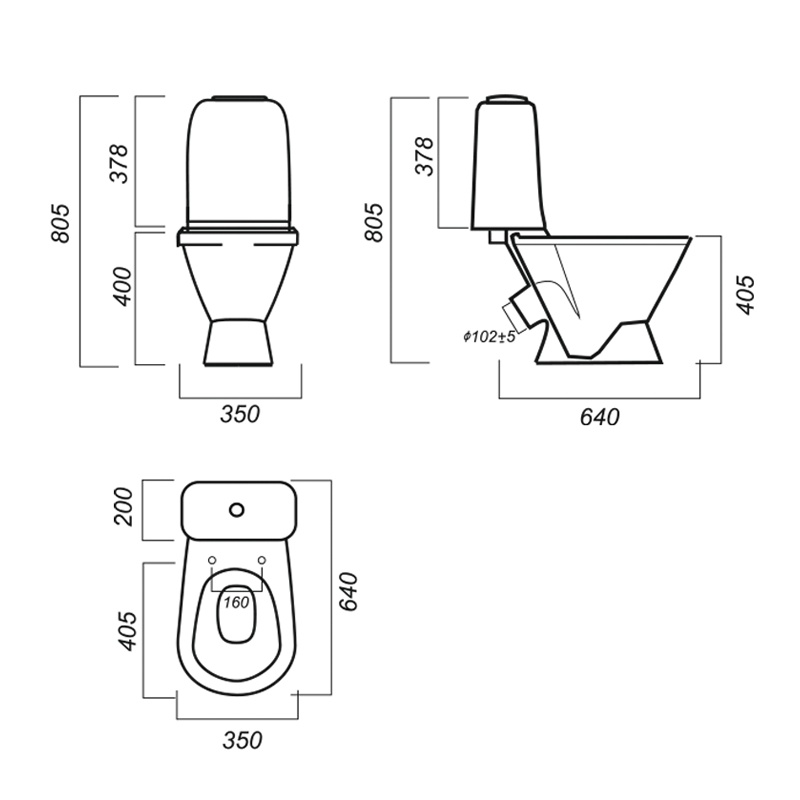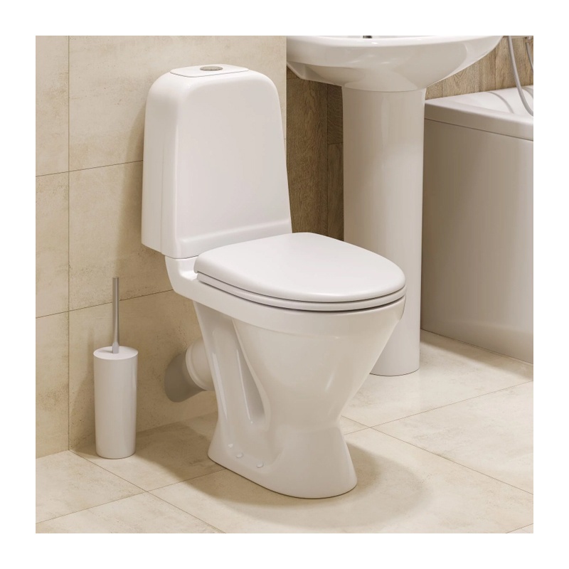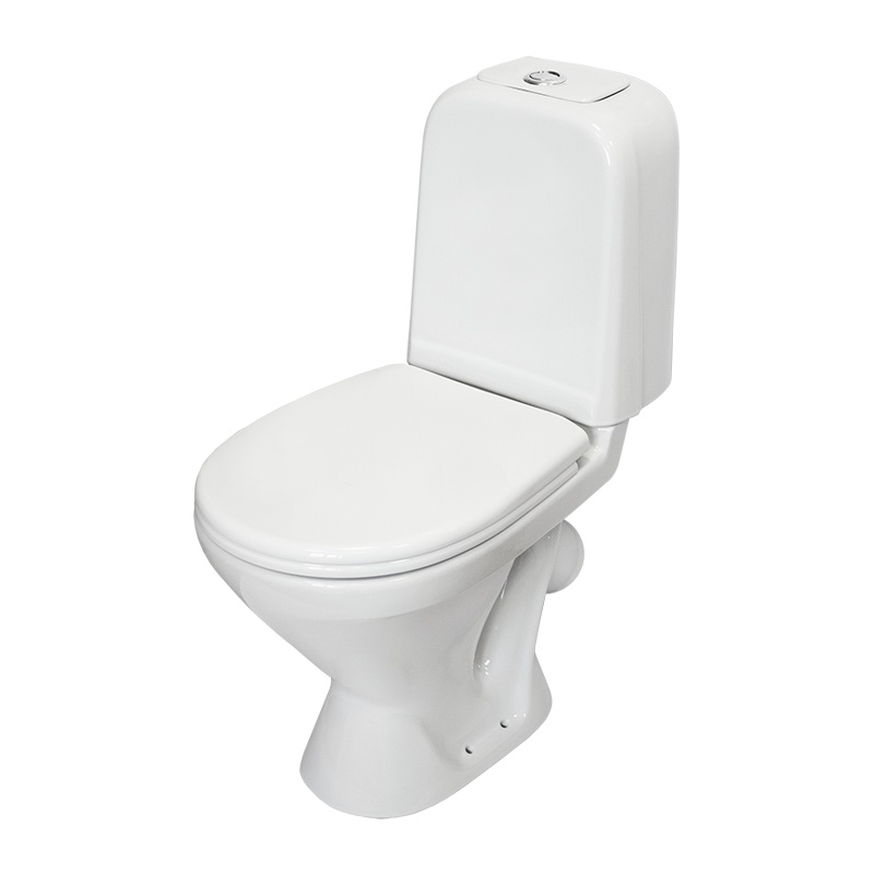 Предназначен для бытового использования. Унитаз ободковый, керамический с косым выпуском. Смывной бачок керамический с нижним подводом воды. Однорежимный спускной механизм Уклад. Сиденье для унитаза из полипропилена.