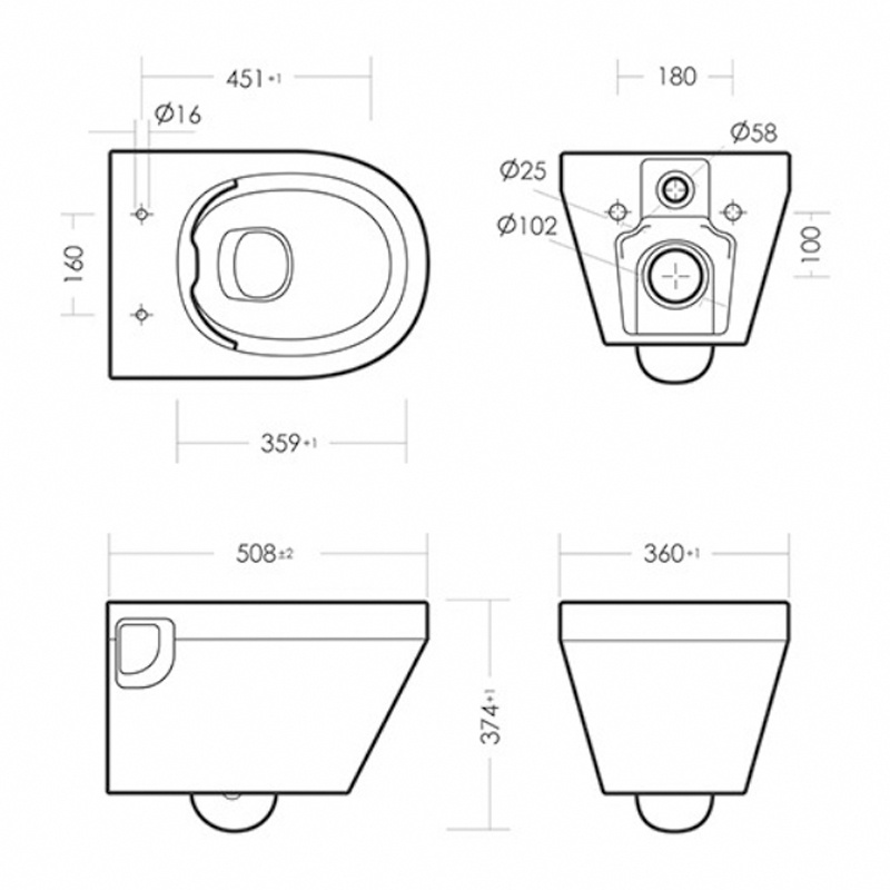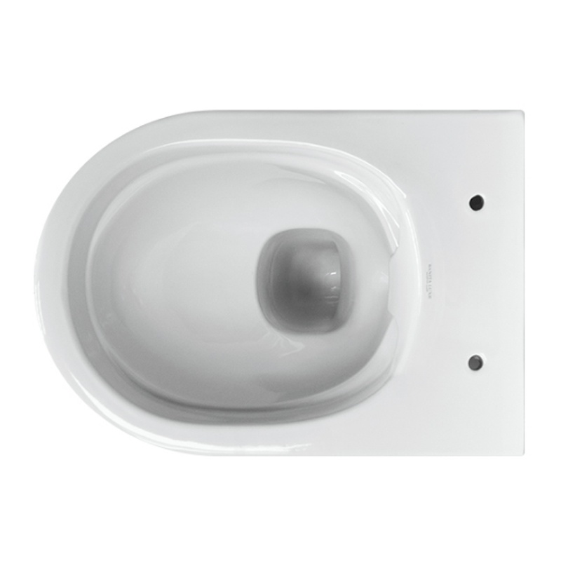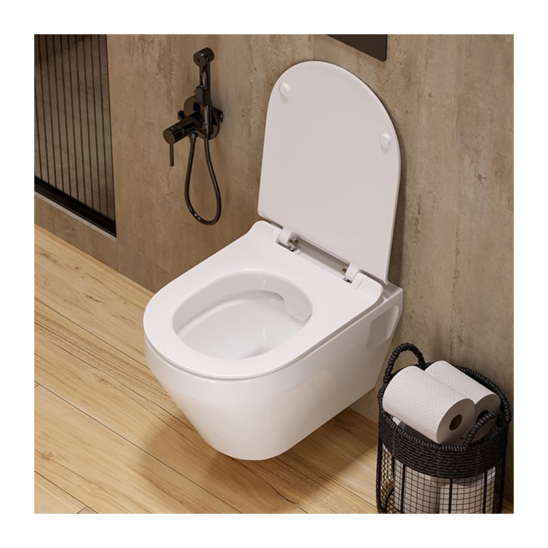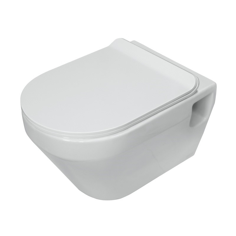 Предназначен для бытового использования. Унитаз безободковый, подвесной, керамический с горизонтальным выпуском. Сиденье для унитаза из дюропласта с микролифтом.