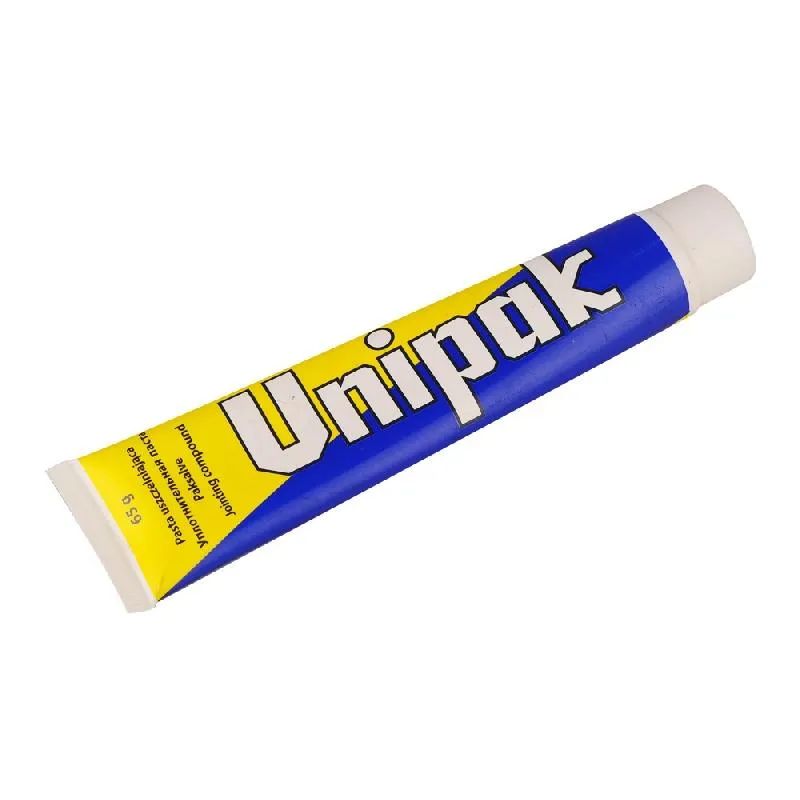 Уплотнительная паста Unipak — это вещество серого цвета, обладающее высокой вязкостью. В ее состав входят жирные кислоты, минералы природного характера, вода, а также парафиновые масла высокого качества. Все составляющие разрешены для применения на предприятиях пищевой промышленности и водопроводах с питьевой водой.