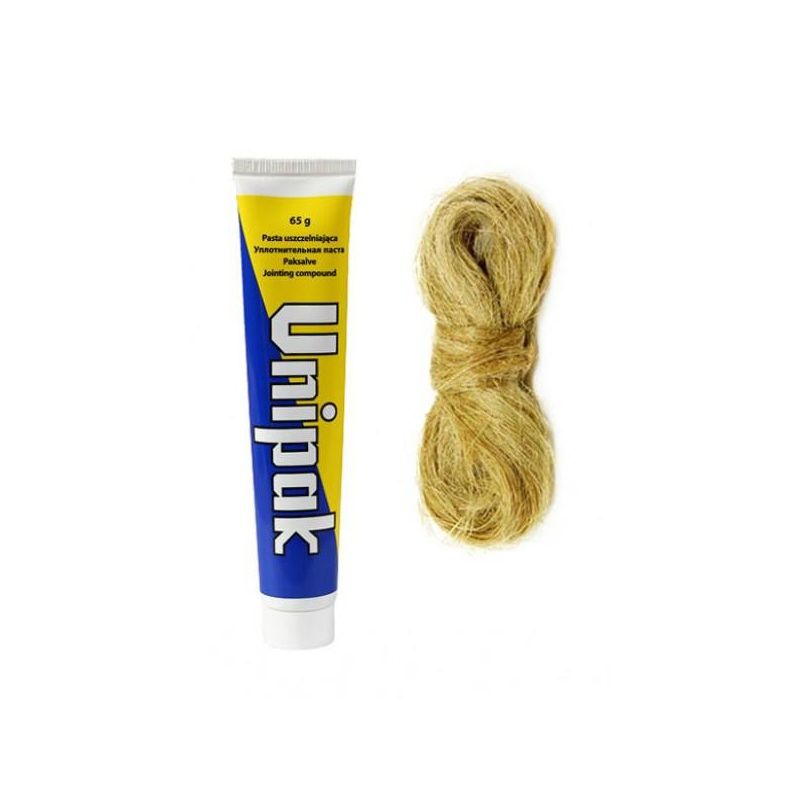 Монтажные комплекты представляют собой набор пасты UNIPAK (MULTIPAK) и льна Unigarn высокой степени очистки, который можно использовать весь, без отходов, брагодоря тому, что несколько соединённых вместе волокон образуют льняную нить. Комплект является готовым решением для уплотнения резьбовых соединений в трубопроводах различного назначения.