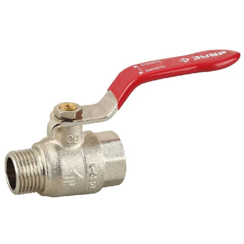 • Кран ЗУБР шаровой 1/2" полнопроходной "папа-папа", ручка, никелированная латунь