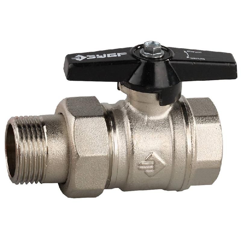 Кран шаровой ЗУБР полнопроходной с накидной гайкой «мама-папа», бабочка, никелированная латунь, 1/2″