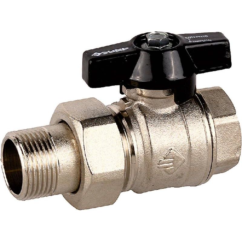 Кран шаровой ЗУБР полнопроходной с накидной гайкой «мама-папа», бабочка, никелированная латунь, 3/4″