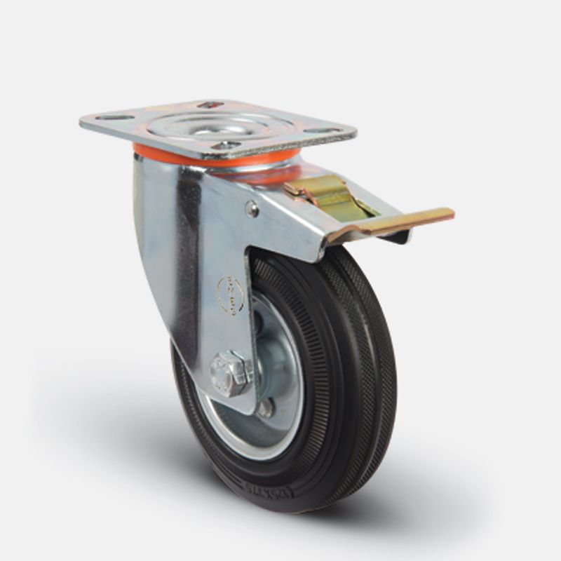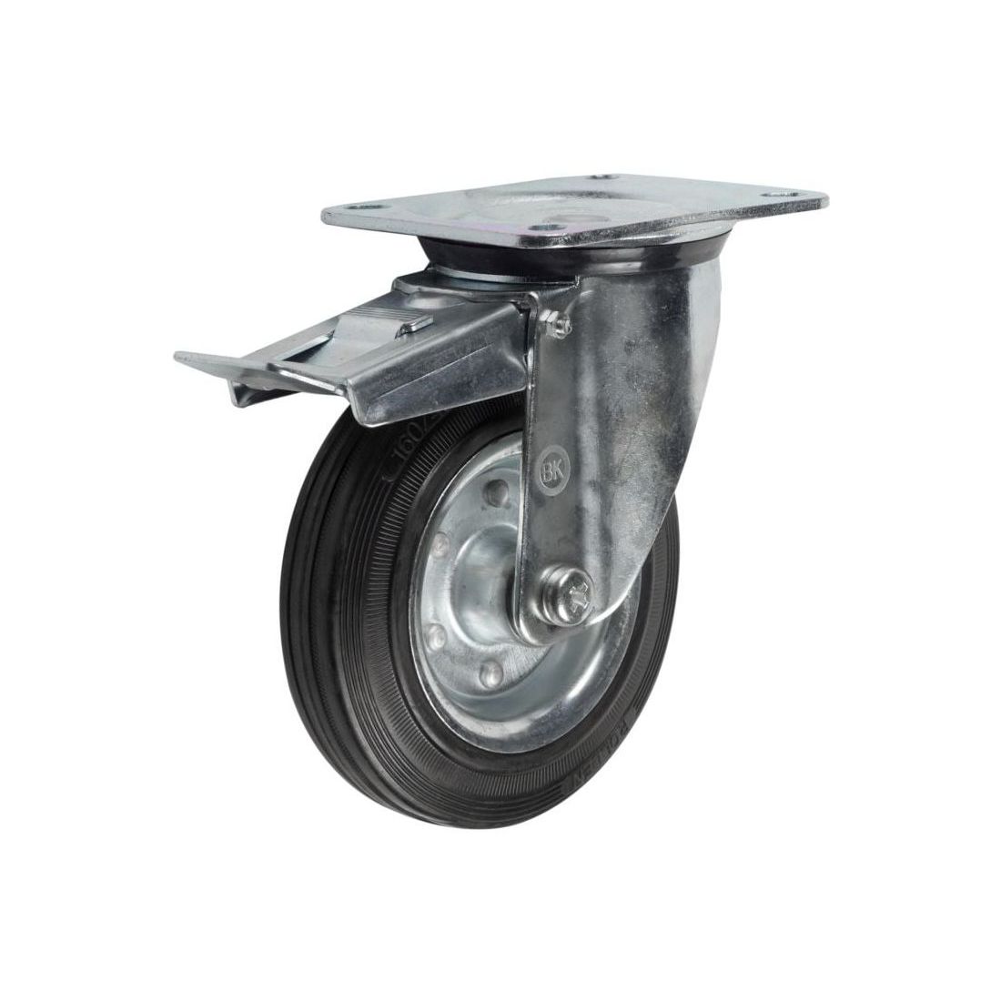 Колесо резиновое с тормозом модели Провор.Д-200мм, рез. эксплуатируется на различных тележках, вышках-турах и другом оборудовании. Покрытие из резины уменьшает скольжение. Платформа для крепления стандартная – 80х90 мм.