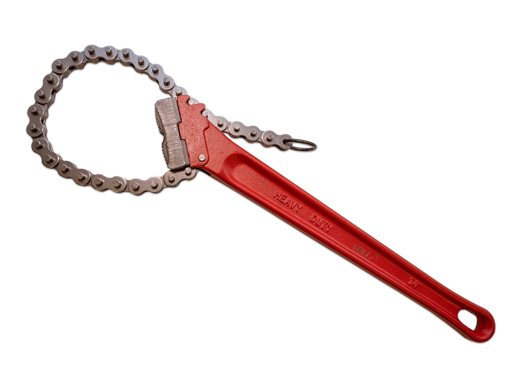 Цепной ключ для труб до 5″ предназначен для труб диаметром до 125 мм (5″), предметов и заготовок нестандартной формы при проведении монтажно-ремонтных работ.