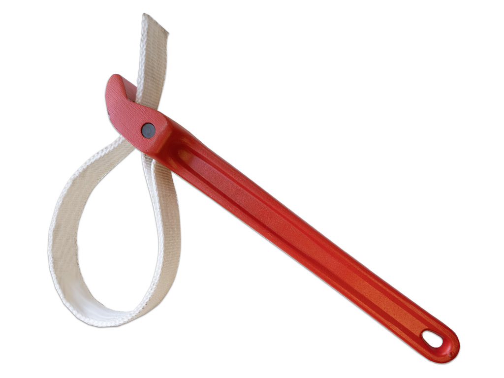 Ремешковый ключ для труб D до 76 мм предназначен для бережной работы с пластиковыми и полированными трубами, трубами с мягким металлическим покрытием, фильтрами Ø до 76 мм (3″)