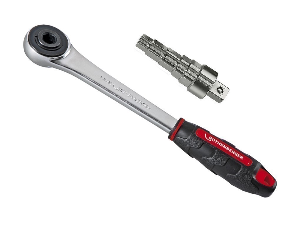 Набор с трещоткой и универсальным ступенчатым ключом для монтажа радиаторных ниппелей и коротких крановых удлинителей, выполнения сантехнических работ с соединениями типа «американка».
