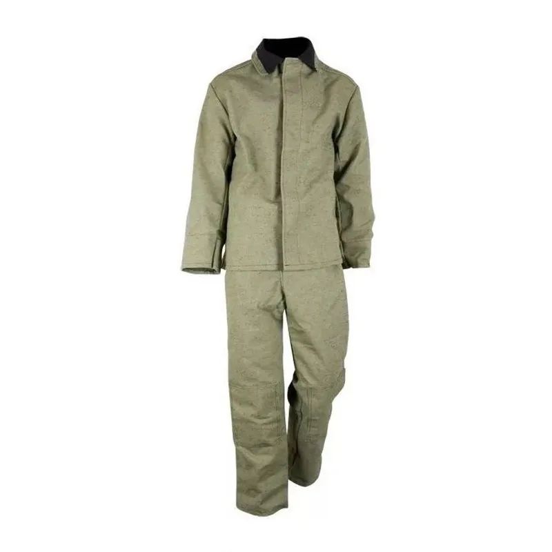 Защитная одежда пошита из брезентового полотна плотностью 480 г/м², состоящего из 51 % хлопка и 49 % льна. Материал обработан огнеупорной пропиткой, в состав которой входят силиконовый каучук, растворитель, наполнитель и пластификатор. Это повышает его стойкость к прожиганию, истиранию, механических воздействий и производственных загрязнений. Брезент имеет низкую гигроскопичность, что позволяет ему не промокать и не впитывать влагу. Но в то же время он воздухопроницаем, поэтому одежда из него не доставляет дискомфорта и под ней сохраняется естественный микроклимат.