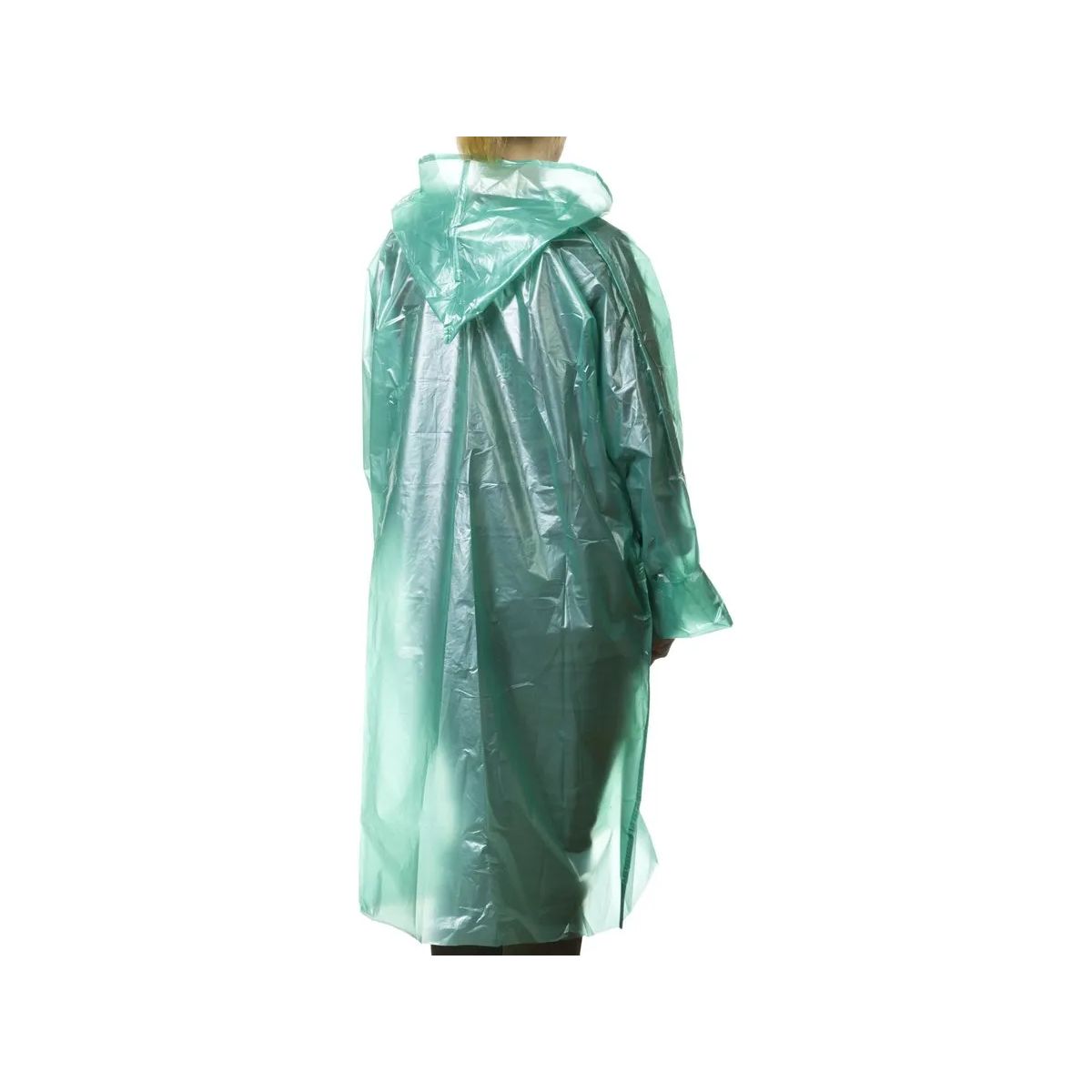 Плащ-дождевик из полиэтилена — лёгкий и удобный предназначен для защиты от воды при условии нахождения на улице под дождем или в помещении под обильными водяными брызгами.