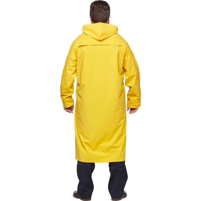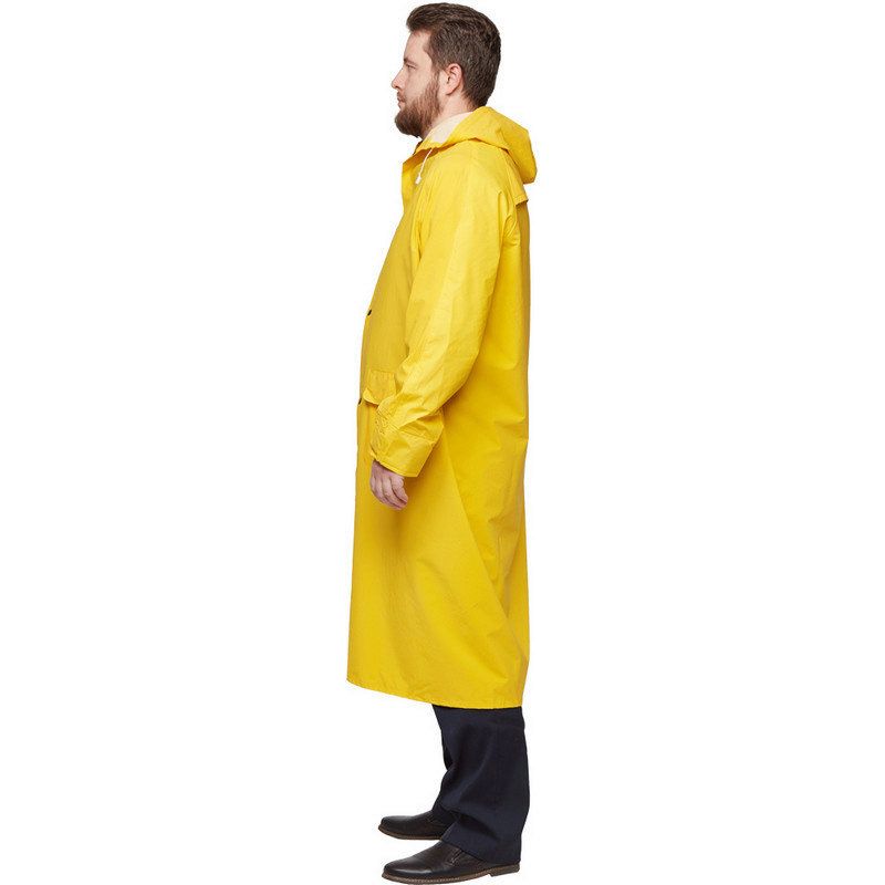 Яркая жёлтая окраска материала плаща делает его обладателя заметным в любых условиях ухудшенной видимости. Например, если идёт очень сильный ливень и стена воды слишком плотная. Или когда необходимые работы проводятся в темное время суток.