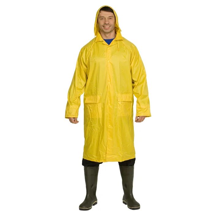 Плащ ПВХ (нейлон) жёлтый, размер ХХL эффективно помогает, защищая от влаги в неблагоприятных погодных условиях или на производстве с большим количеством воды. Например, в таких сферах как: строительство, прокладывание и ремонт дорог, обслуживание трубопроводов и прочее.