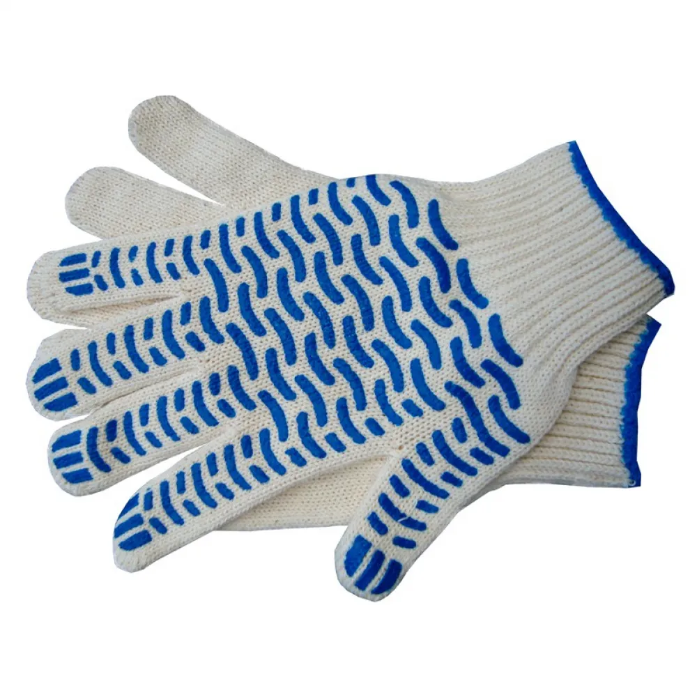 Перчатки хлопчатобумажные с ПВХ-покрытием относятся к средствам индивидуальной защиты, предназначенным для защиты кожи кистей рук при контакте с влагой, грязью, горюче-смазочными материалами. Снижает риск порезов и травмирования, обеспечивая надежное сцепление с поверхностью тяжелых предметов.