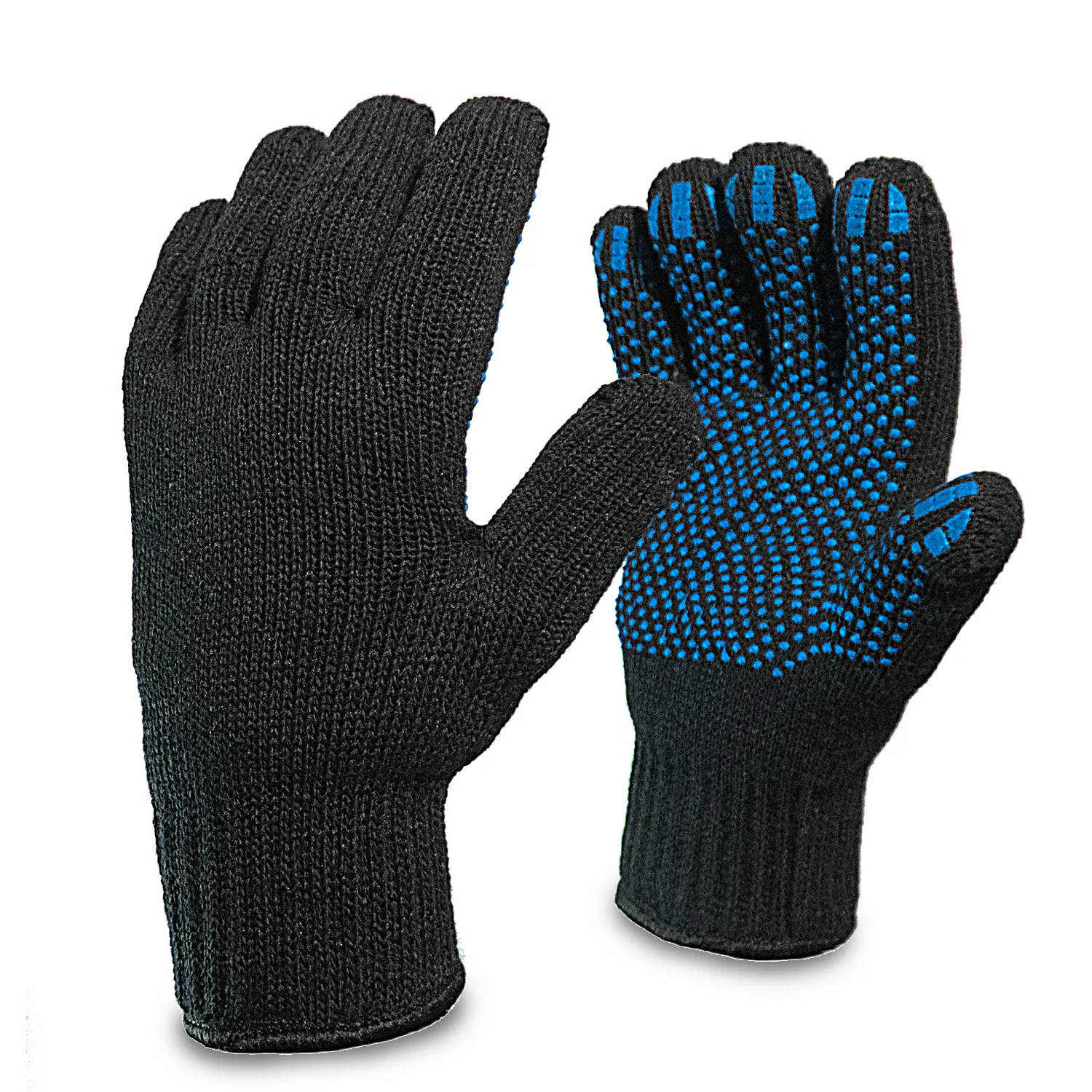 Трикотажные перчатки защищают руки от холода, но в то же время не сковывают движения. Поэтому их удобно надевать перед началом строительных, ремонтных, монтажных работ. Перчатки плотные, они сделаны из сочетания полушерстяной нити и ПВХ. Поливинилхлорид образует напыление, которого поддерживает дополнительную термоизоляцию, делает основной материал более гибким и эластичным.