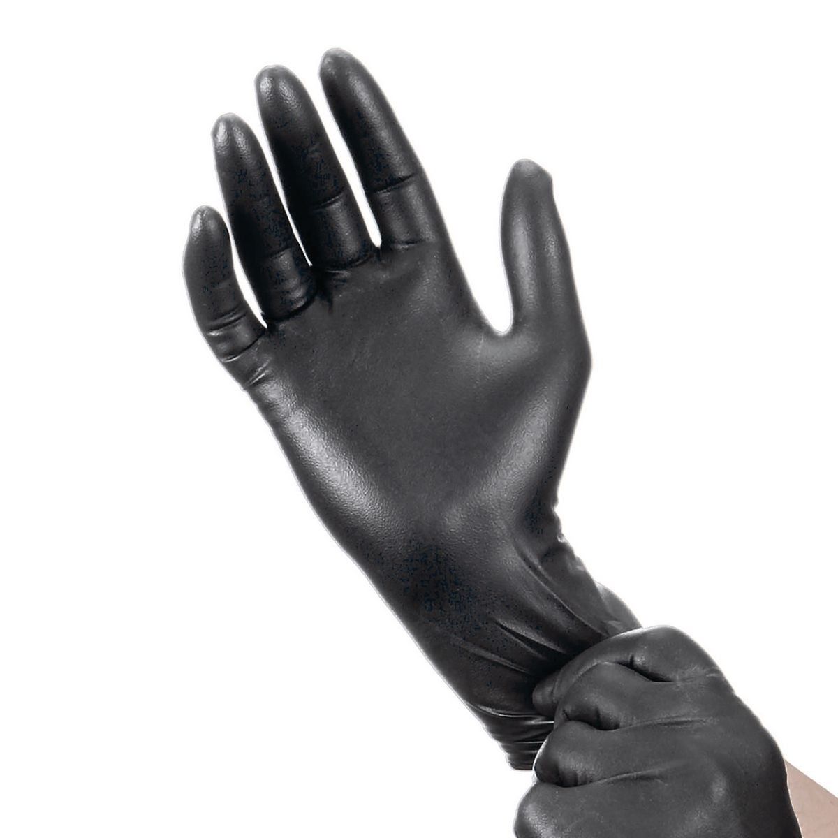 Перчатки изготовлены из ПВХ черного цвета, имеют гладкую поверхность и манжет-валик, способствующий удобному надеванию и сниманию. При своей высокой плотности материал обеспечивает достаточную тактильную чувствительность, является гипоаллергенным. Внутреннее опыление не предусмотрено. Нестерильны, предназначены для одноразового использования.