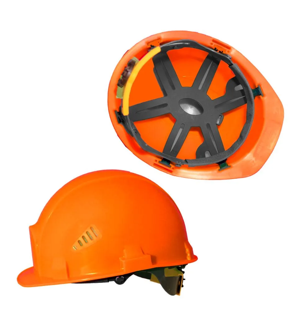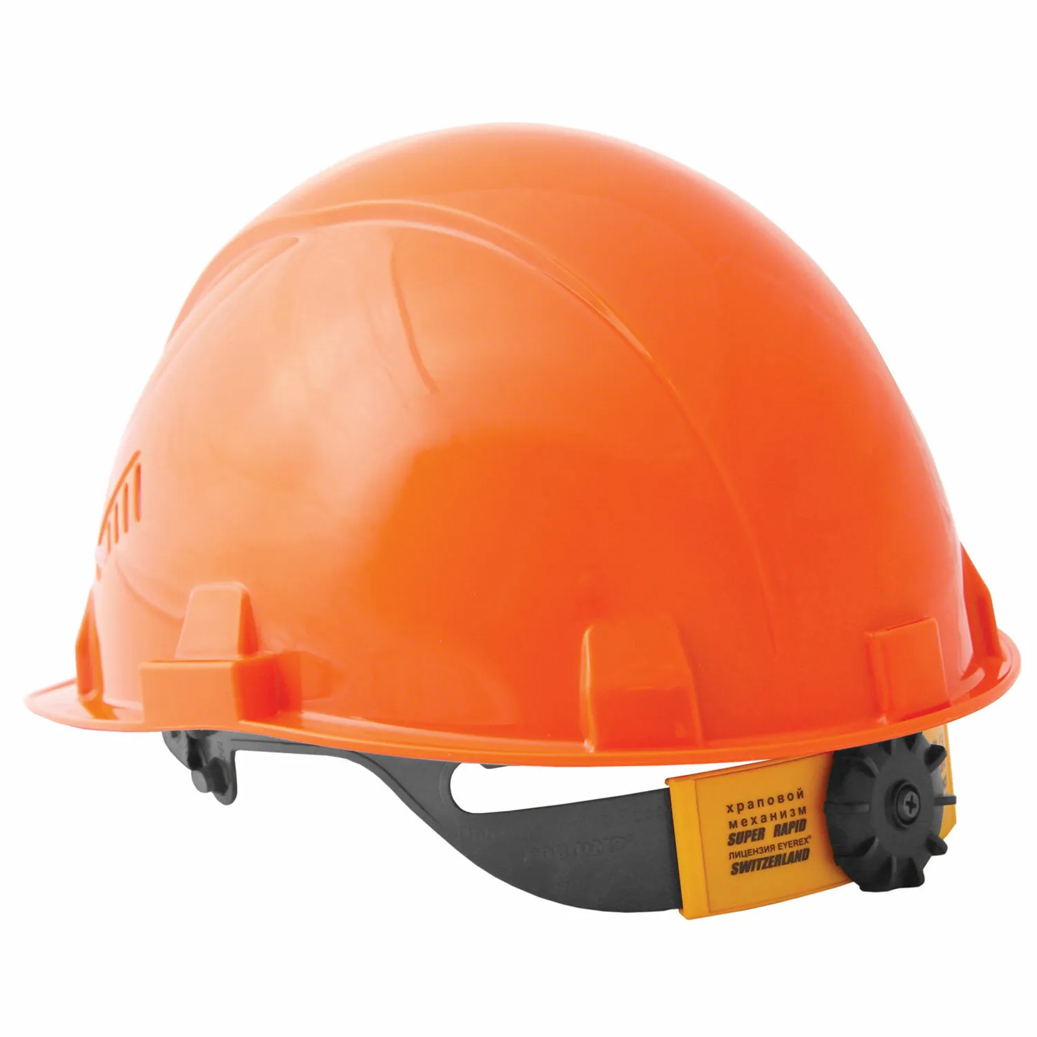 Строительная каска оранжевого цвета с храповым механизмом предназначена для защиты головы при выполнении высотных, подземных и электромонтажных работ. Модель соответствует требованиям безопасности для опасных производственных участков.