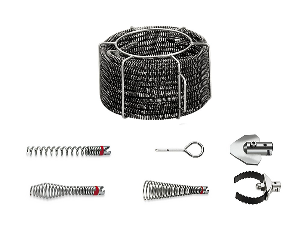 Комплект спиралей и инструмента для осуществления прочистных работ с помощью электромеханических секционных машин.