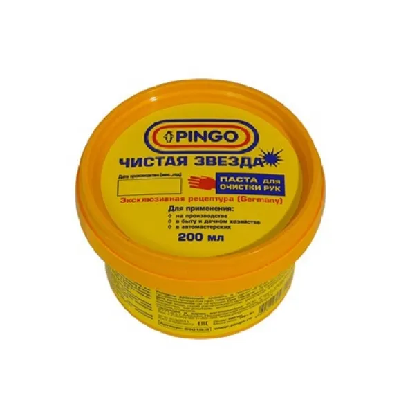 Паста для очистки рук «Чистая звезда» является эффективное средство для очистки с кожи рук загрязнений от следов типографской краски, графита, строительного клея, сажи, битума и других строительных материалов.