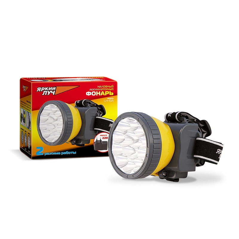 Предназначен для освещения затемненного пространства. Крепится на лоб с помощью резинки, что позволяет освободить руки. Два режима работы: режим 5LED — 8 часов, режим 15LED — 2,5 часов. В качестве источника света используются 5 или 15 светодиодов. Срок службы составляет 50 000 часов. Аккумулятор герметичный кислотно-свинцовый 4В 800 мАч, количество циклов заряда более 300. Время зарядки аккумулятора — 5 часов. Материал корпуса фонаря — прочный ABS пластик.