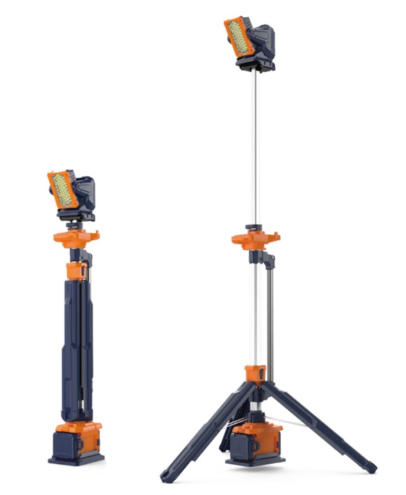 Мощная мобильная световая мачта с телескопической конструкцией высотой до 2,3 м. Привод осветительной головки с дистанционным управлением, поворотом 3600 и наклоном 1800. Три режима светового потока до 12 000 лм. Два АКБ Li-Ion 24,5 В, 4 А•ч, 98 Втч. Время работы от двух аккумуляторов в режиме Standard до 8+ ч. IP66. Вес без АКБ — 9,7 кг.
