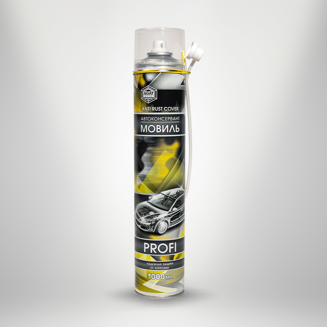 Автоконсервант «Мовиль» в аэрозольной упаковке особенно удобен для обработки труднодоступных мест. Средство обладает хорошей проникающей и пропитывающей способностью. Допускается наносить автоконсервант в скрытые полости, ранее обработанные консервирующими составами, на ржавую поверхность, а также на заводские антикоррозионные покрытия.