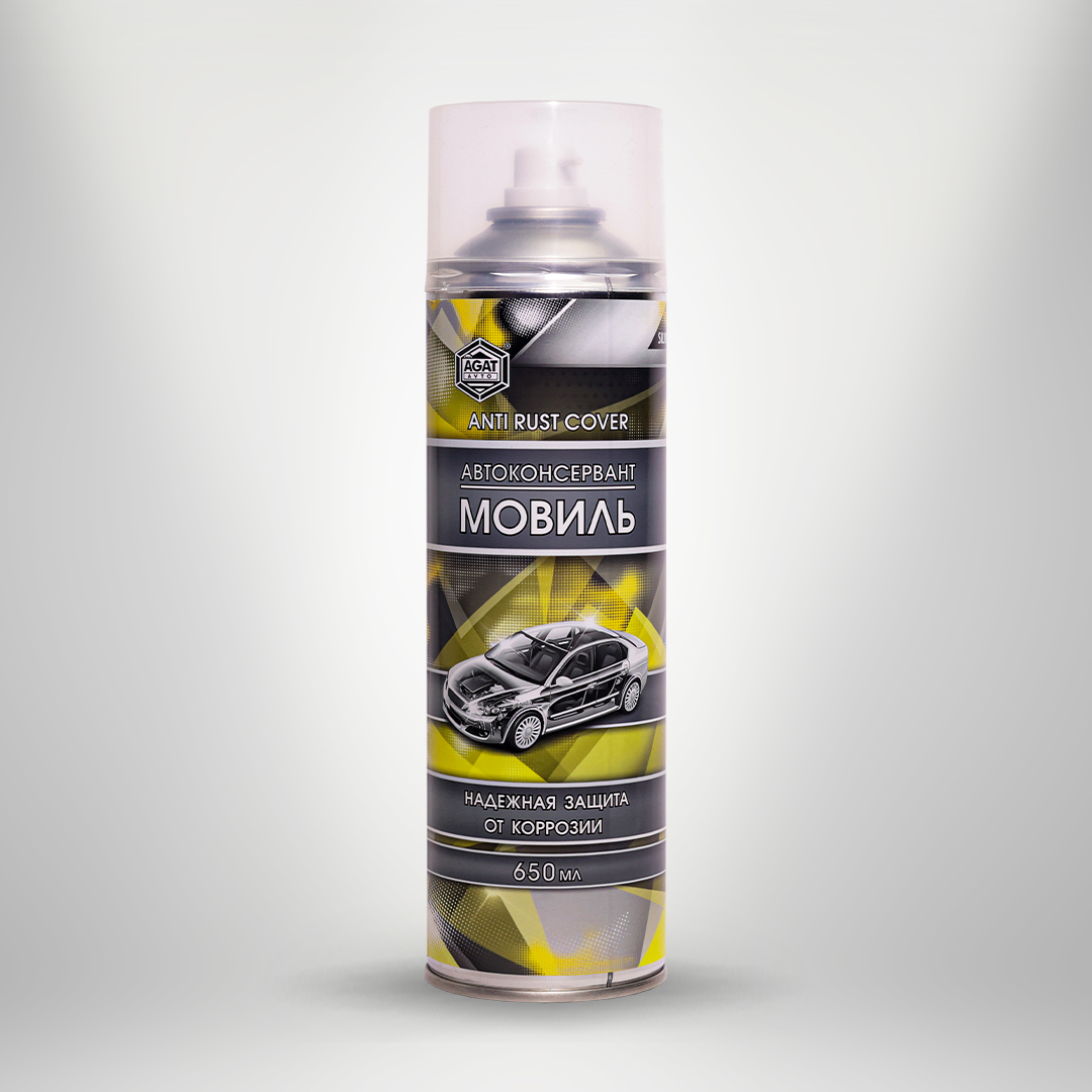 Автоконсервант «Мовиль» в аэрозольной упаковке особенно удобен для обработки труднодоступных мест. Средство обладает хорошей проникающей и пропитывающей способностью. Допускается наносить автоконсервант в скрытые полости, ранее обработанные консервирующими составами, на ржавую поверхность, а также на заводские антикоррозионные покрытия.