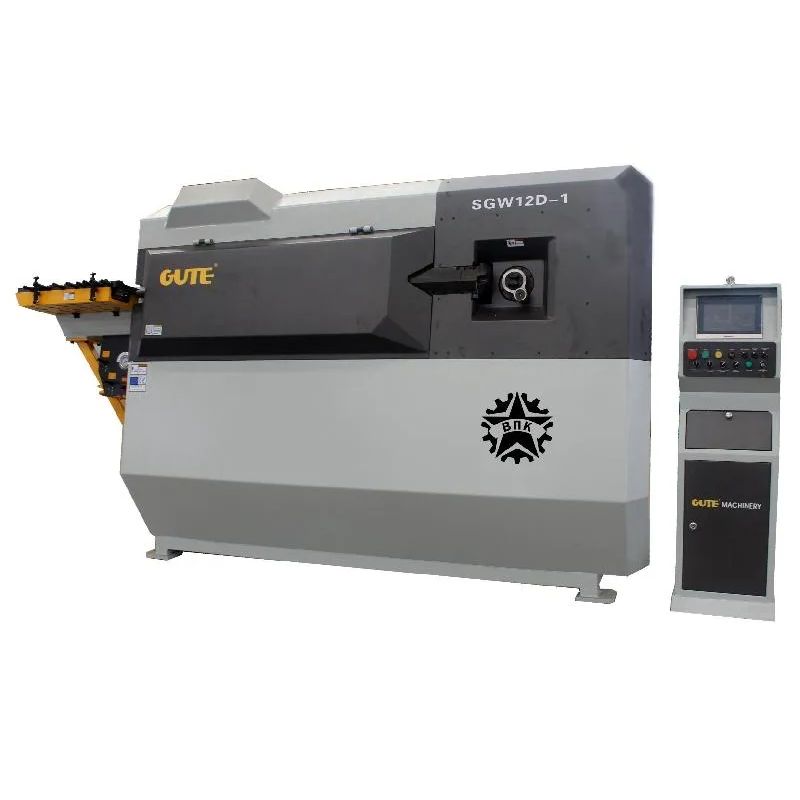 Правильно-гибочный станок с ЧПУ для работы с арматурной сталью. Обрабатывает арматуру диаметром до 12 мм. Максимальная скорость протяжки 75-100 м/мин. Мощность 33 кВт.