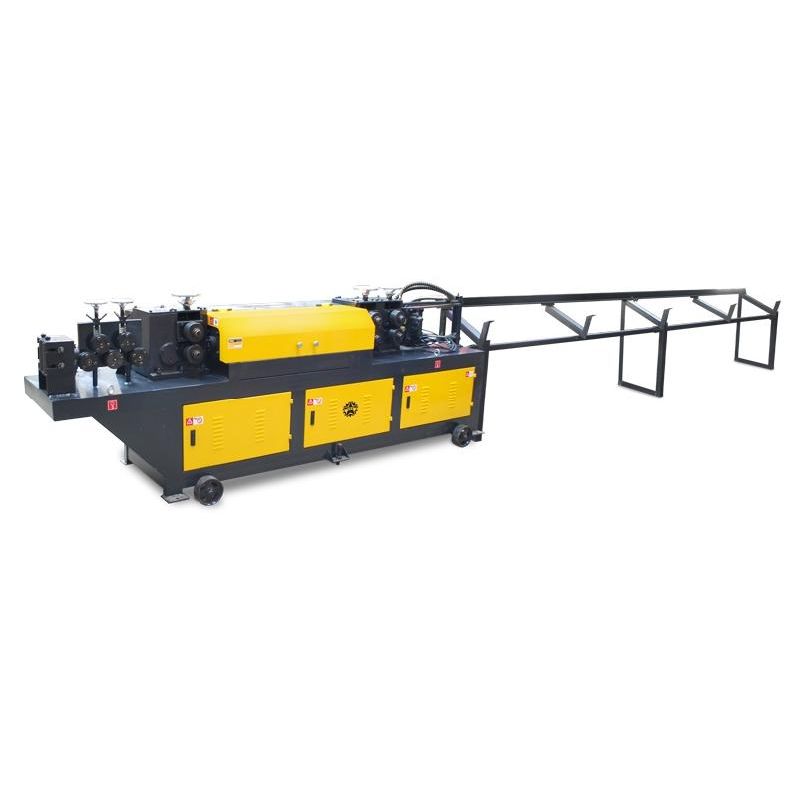 Арматура затягивается в станок роликами подачи. Проходя через выпрямительный механизм, она выпрямляется. Резку осуществляет нож при помощи гидропривода.