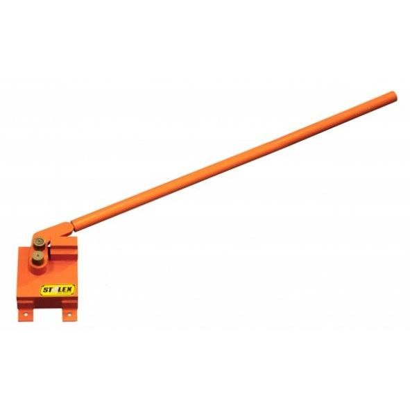 Станок представляет собой перемещаемый вал, который используется для гибки арматуры. Обрабатываемое изделие жестко фиксируется в зажимах.
