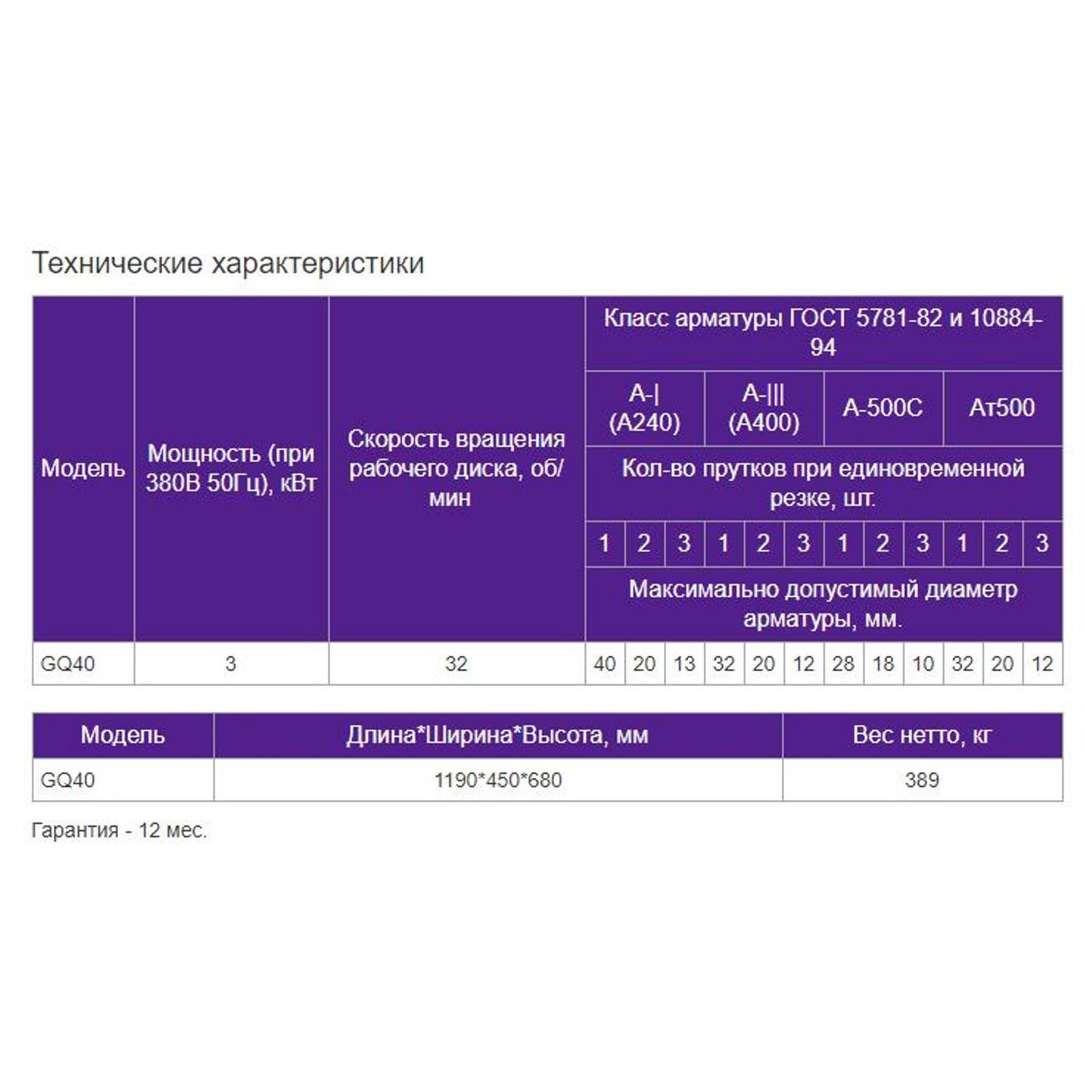 Оборудование рассчитано на гладкую арматуру с диаметром гибки до 40 мм и на рифленые материалы диаметром до 32 мм. Для корректной работы оборудования необходима заправка редукторным маслом: его потребуется около 8 л. Точное описание правил эксплуатации и рекомендации по выбору масла вы найдете в сопроводительной документации, которая входит в комплект поставки. Станок работает с мощностью 3 кВт, максимальный размер прутка – 40 мм. Весит это оборудование 390 кг. Его длина превышает метр, а высота равна 680 мм, так что со станком удобно работать.